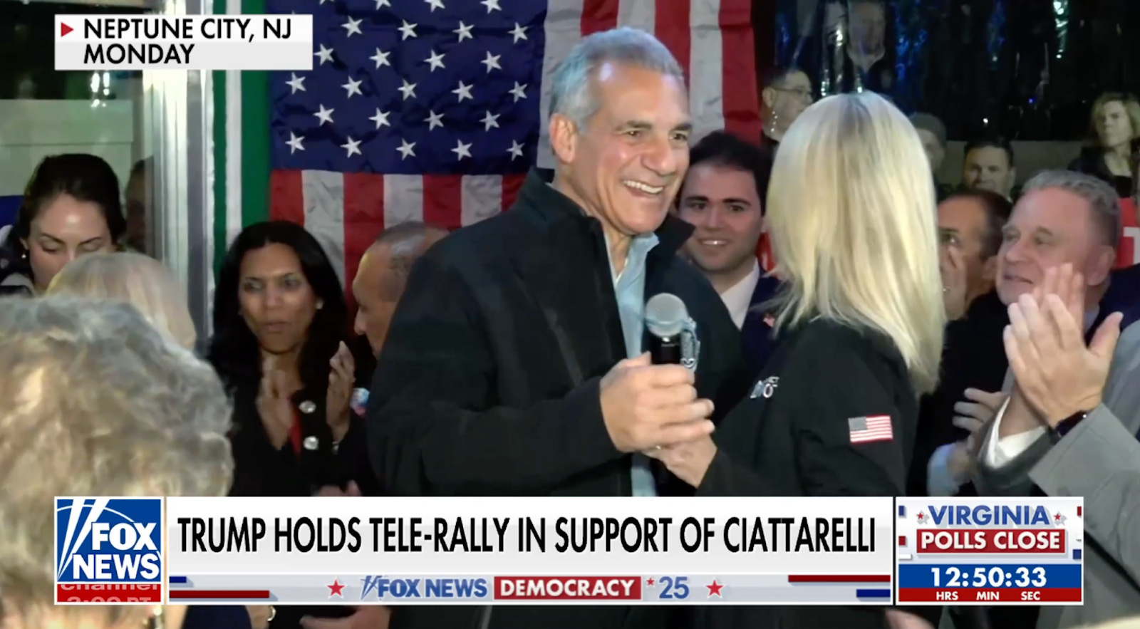 Trump gives remote speeches for New Jersey’s Ciattarelli and Virginia’s Sears after Ciattarelli is reunited with his military son on Election Day Eve