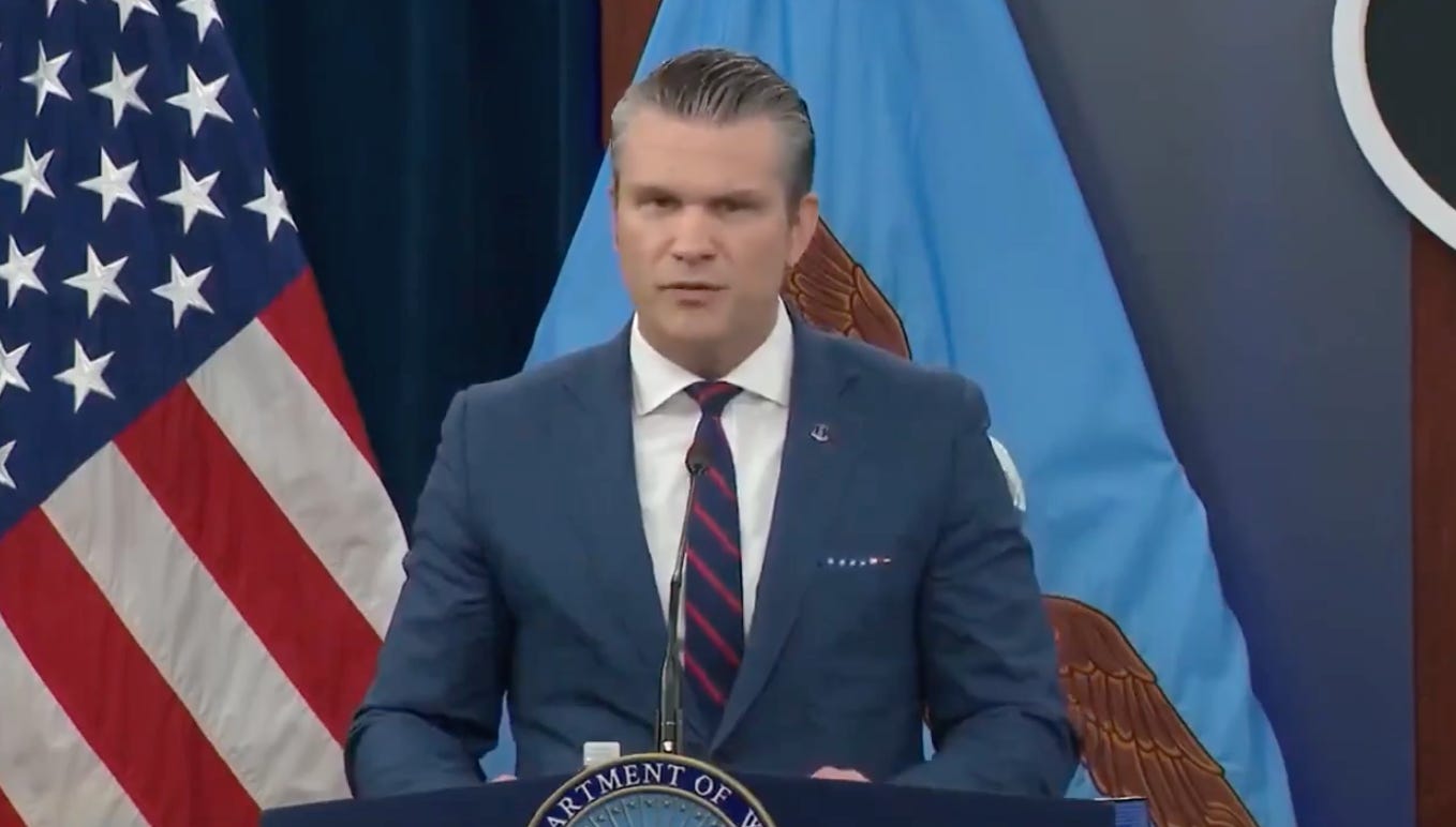 Sec. of War Pete Hegseth and Joints Chief Chairman General Dan Caine give live updates from the Pentagon