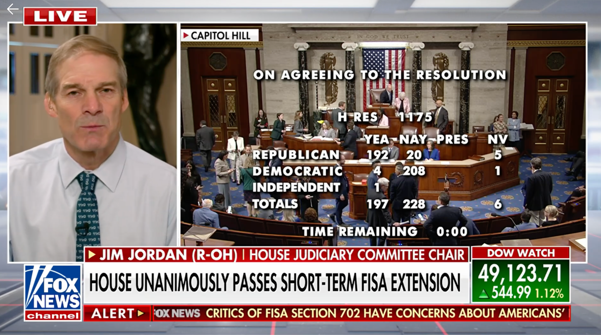 The House passes a short-term FISA reauthorization, Rep. Jim Jordan reacts