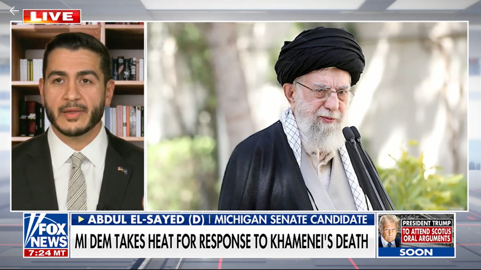 Michigan Senate candidate Abdul El-Sayed is interviewed live for saying some of his potential constituents would be sad over Khamenei’s death