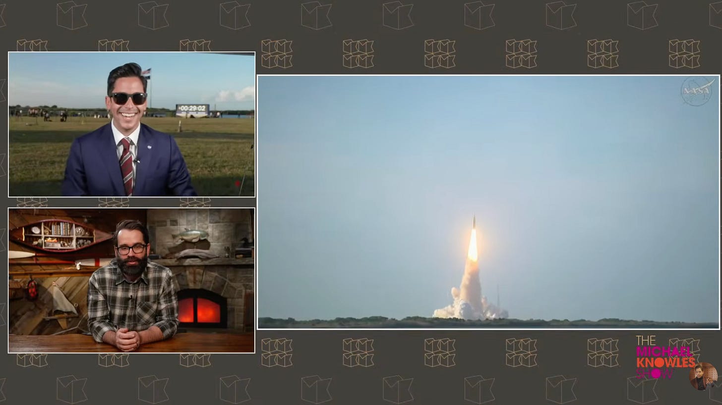 Recording live from the launch site, Knowles reflects on how Artemis II is the first crewed mission to leave low Earth orbit since Apollo 17 in 1972, frames the ultimate goal of a moon base as a new space race with China