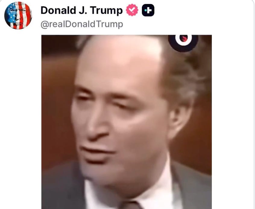 President Trump just exposed Chuck Schumer, posting a 1996 video where he supported ID to prevent fraud. [X, Daugherty]