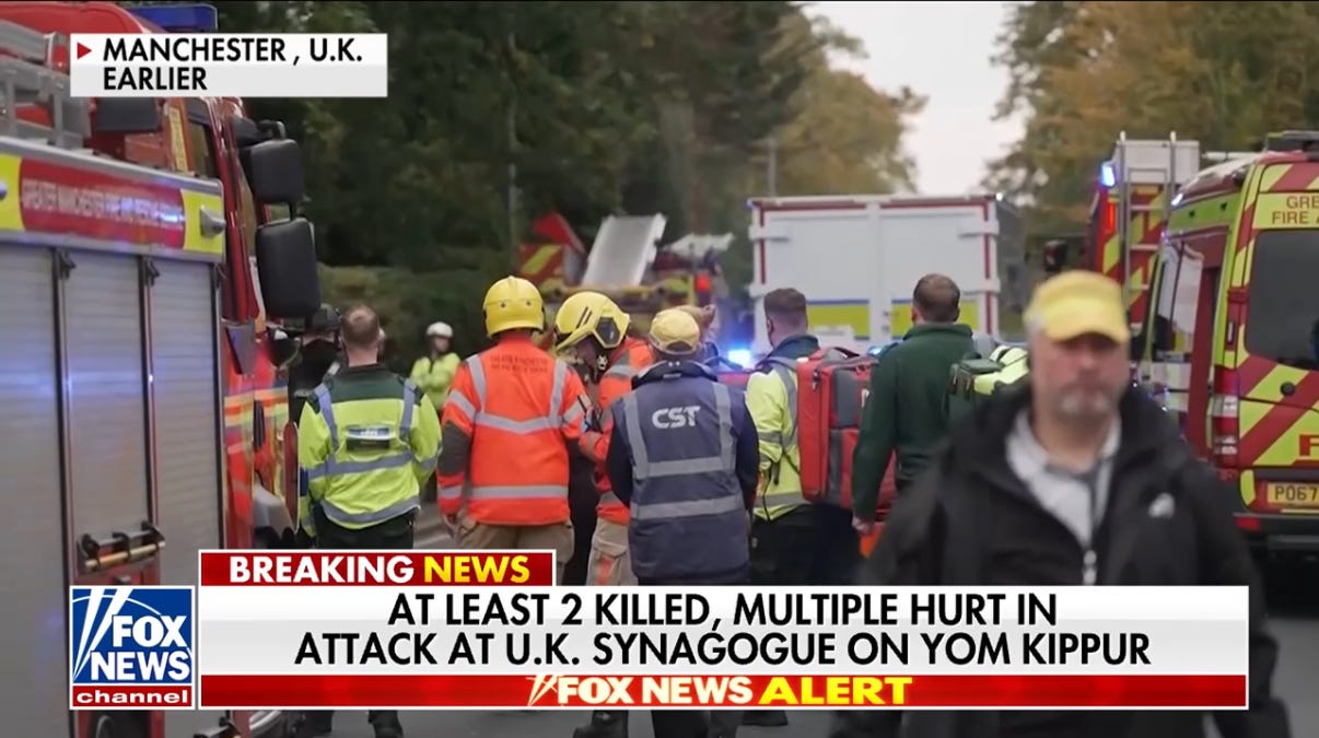 Attack upon Jewish synagogue in Manchester on Yom Kippur