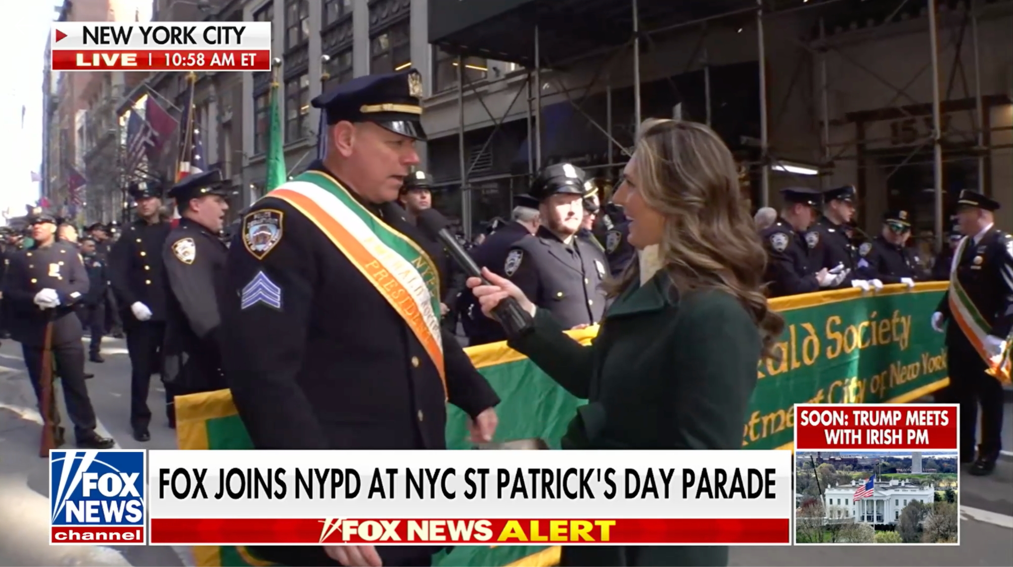 The NYPD is interviewed at the country’s largest St. Patrick’s Day parade