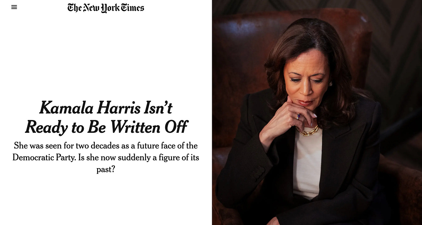 Kamala Harris to the NYT: “There will be a marble bust of me in Congress. I am a historic figure like any Vice President of the United States ever was.” [X, Price]