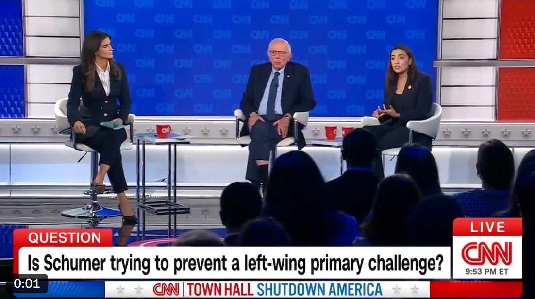 AOC and Bernie Sanders speak over each other on CNN Townhall when asked about future in the Senate, primarying Chuck Schumer