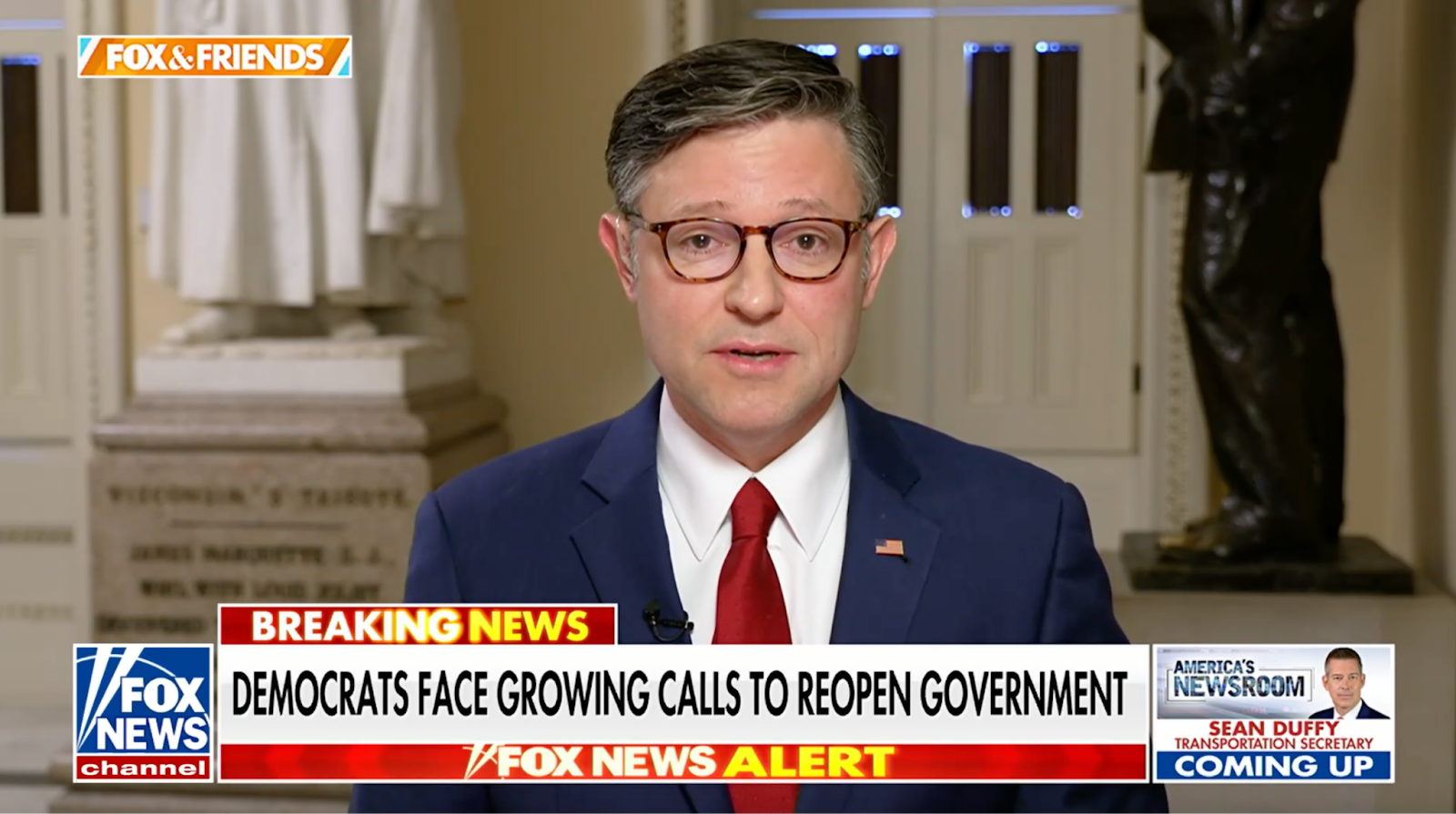 Speaker of the House Mike Johnson is interviewed on U.S. airlines endorsing the Republican Clean CR bill, the Venezuelan drug boat strikes. Washington Post and CNN polling on shutdown, and Trump calls for end to fillibuster