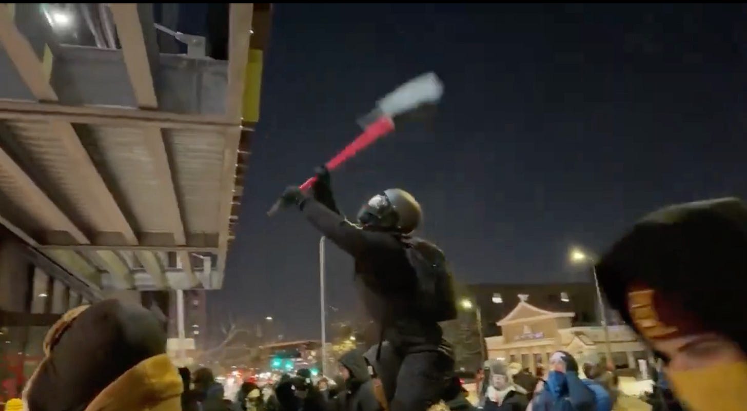 Anti-ICE protesters destroy the sign of Home2Suites Hotel in Minneapolis, where they believe ICE is staying. [X, Breaking911]
