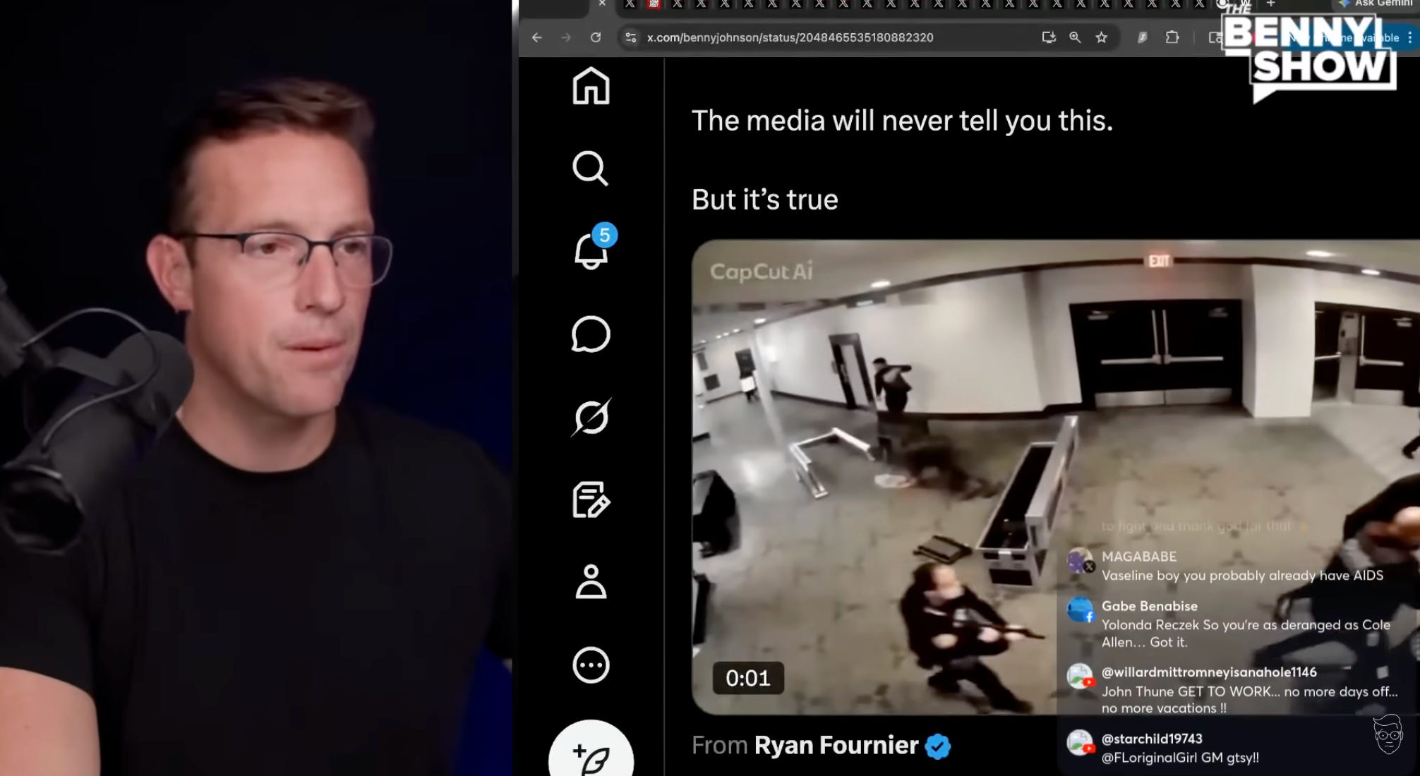 He reviews past statements by figures like House Minority Leader Hakeem Jeffries and Jimmy Kimmel that could have incited violence against President Trump